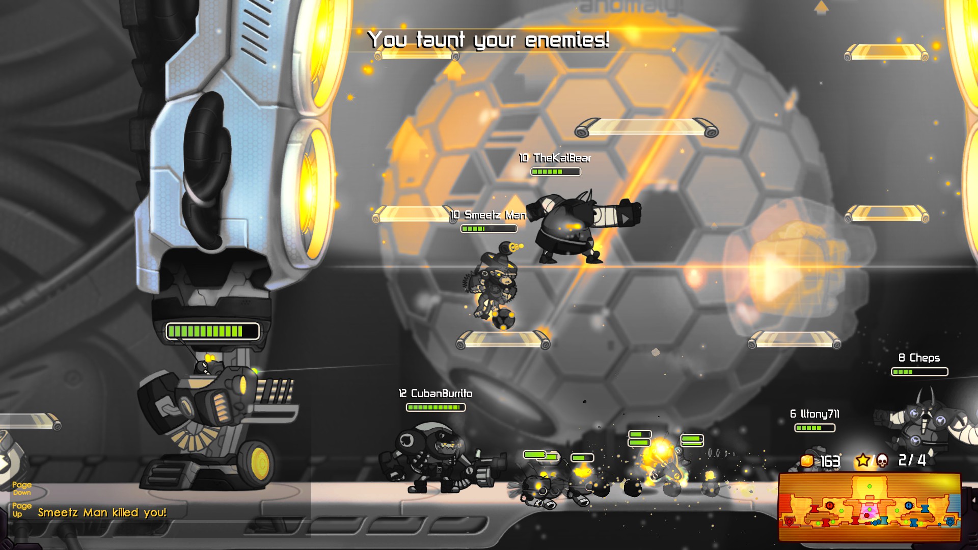 These guys had a brutal setup. If you stepped past the turret anywhere near the Skolldir, he would toss directly into Yuri’s bomb-nest, pretty much getting an instant kill. This continued for quite a while until I finally got my knife and clone upgrades all bought up and attempted to stealth over the bombs, wait for a fresh clone, and then drop and use the clone to help soak damage from the turret to solo-push.