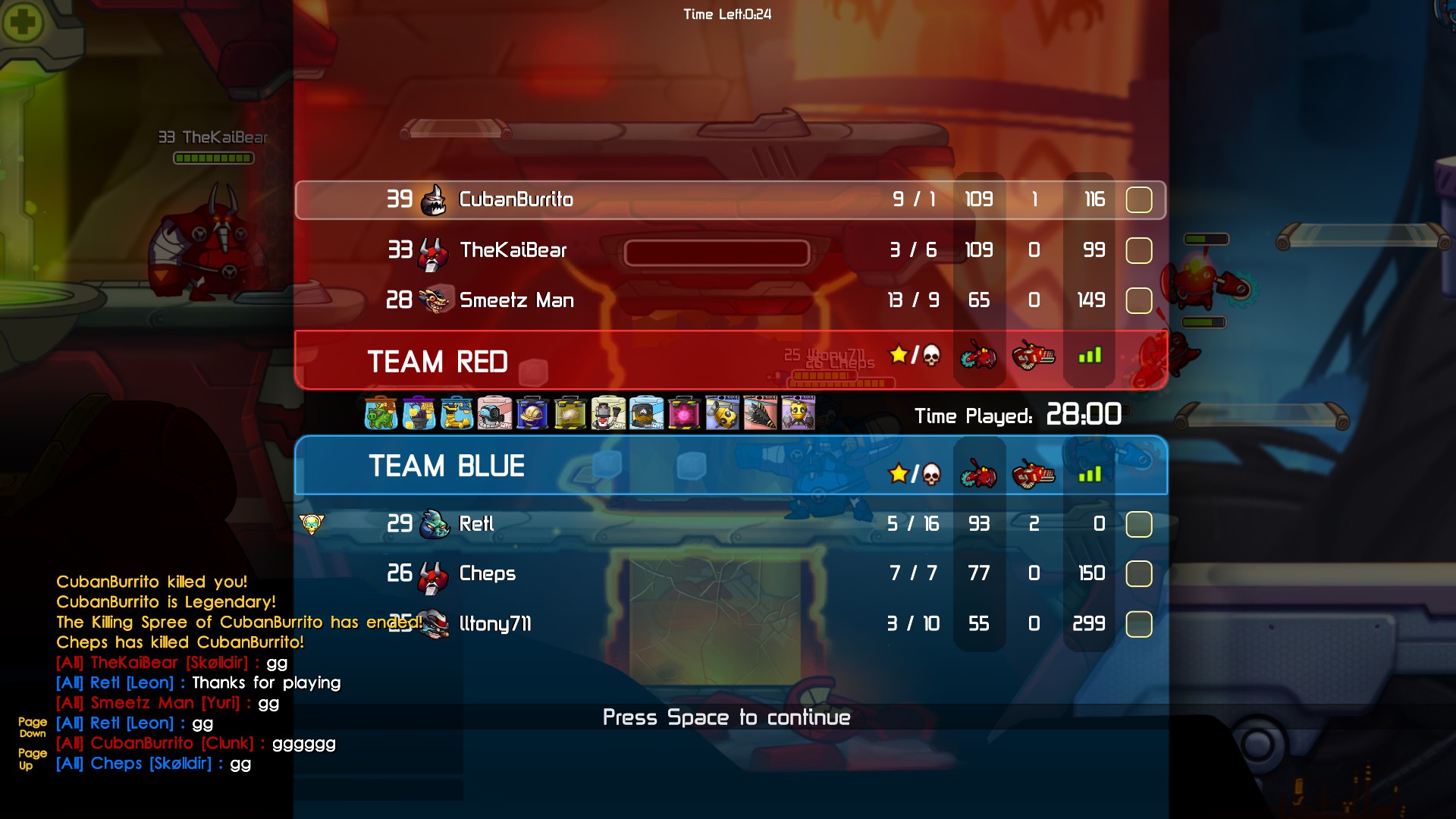 Played Awesomenauts for 3 hours.