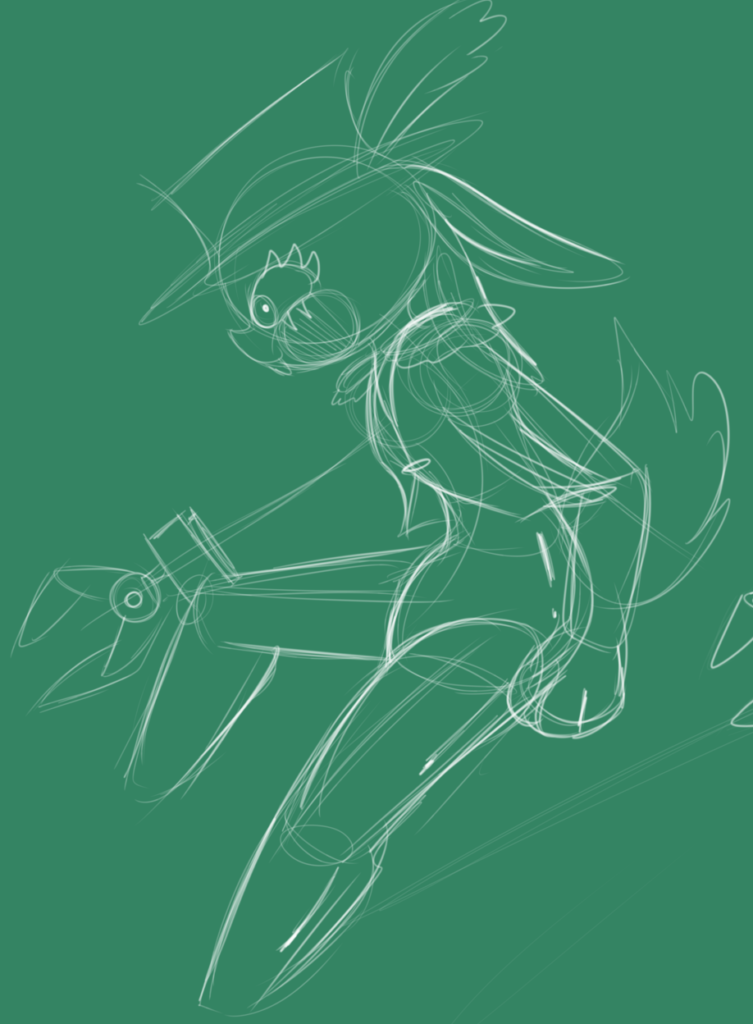 Rough sketch fanart of Felina from the indie game Dungeon Clawler. A cat-loving bunny wearing a leotard. The only thing I don’t like about the character is the hat.