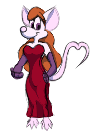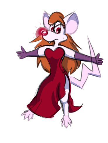(CC0) Fran is Narf spelled backwards. Mostly exists because Pinky from Pinky and the Brain / Animaniacs has worn feminine clothing several times and he looks great in it every single time. This is basically that, but I took from Jessica Rabbit’s outfit. Also I originally added the light up nose thinking I would have her fire a nose beam or eye beam in retaliation or just as a general projectile attack. In Rabbit Flow, she has the exact same attack as the other mice.