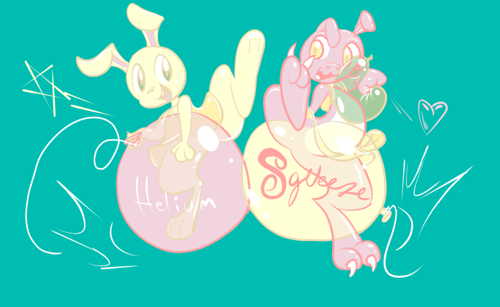 (CC0) The older HeliumSqueeze brand banner that I wanted to update and replace. I know I wanted at least one Squee, one Helibuster, and the way balloons will be used in the setting to be immediately evident. But these specific throwaway designs and the color scheme just never quite hit right with me. I think at the time I was going for “pastel pink lemonade vibes, and teal-green for leafy feels” but it just never quite worked how I wanted.