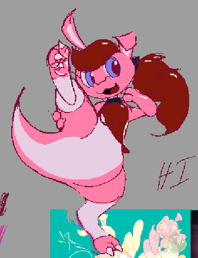 And by contrast this was made around February 2023. Very directly based on the following picture by Chu: https://twitter.com/sdamned/status/1522371862877024256/photo/3 so I can’t say it’s really even “mine” in a lot of ways. But the amount of satisfaction I got from the amount of work I put into making it was nowhere near enough to make me want a consistent practice of doing this kind of thing. But this _was_ the moment where it clicked that I like the “doubled-outline with white-outer-shell” sticker-like look. If I ever revisit this character and the VN I made her for, she _will_ be a Squee/Rabbit so that I’m not tied to the rules of an outside IP that I don’t. And once again you can tell which parts I didn’t care about, like that book and which parts I cared too much about. Though I’m getting a weird vibe after the fact from the striped clothing because I’ve seen people use striped flags to try to sneak some weird messages or to hijack otherwise-acceptable messaging and I really really don’t want to have to start double-checking every single lined color pattern to make sure I didn’t hit on some kind of flag I didn’t know about.