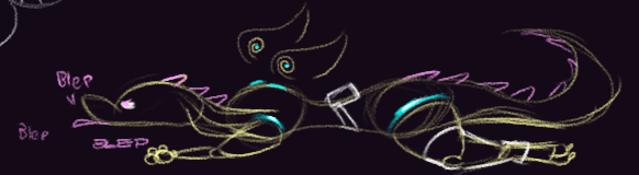 (CC0) A doodle of Miranda. Despite being implied to be the same kind of creature as the LoreHounds mentioned earlier, she’s a resident of Caliber and doesn’t open manifest any seemingly-otherworldly kind of powers. But she is good with making technology that probably shouldn’t work. Like suspiciously good at it. But the things she makes are at least _mildly_ plausible.