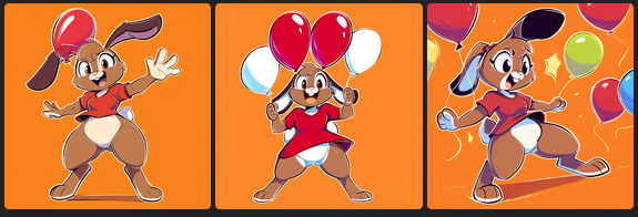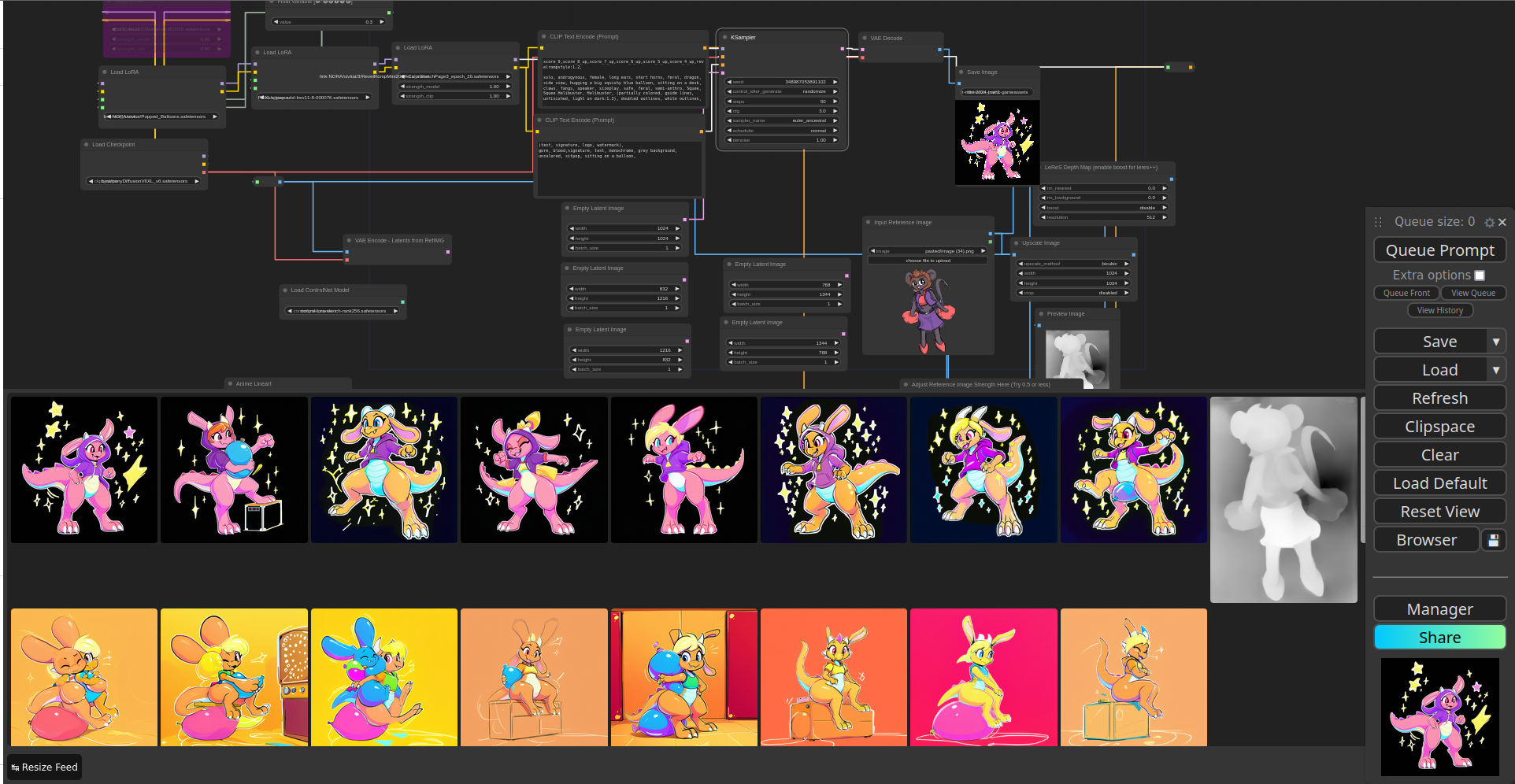 It’s still easy to tell that I did not draw these, the lineart is far too clean and the hands are far more detailed than I almost ever do on my own drawings. But at the same time it’s very clear that it’s starting to absorb the general body-type, bounciness, tendency towards open-mouths, balloon/bubble aesthetics, and outfit that I tend to give these characters even once I drop the depth maps and controlnets completely out of the process.