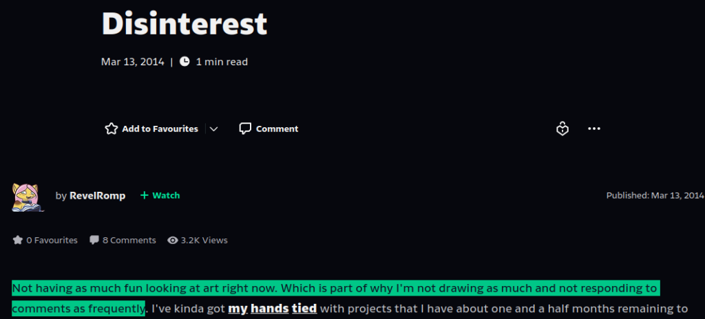 Similar thing in 2014, though I think at that point in time I hadn’t realized it was the entire process of making the art that was draining me, not just a lack of interest in the social element and the art itself.