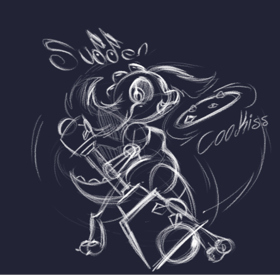 I don’t really have a super favorite immediately on my mind, but I’m still kinda toying around with the ideas of whatever it’s like in the world Ribbon Badge and Zooey inhabit, so another doodle of RB for the moment! SUDDEN COOKISS (may not contain kisses)